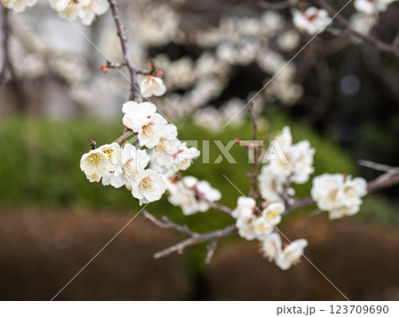 晩冬に咲き始めた美しい白梅【滄溟の月】