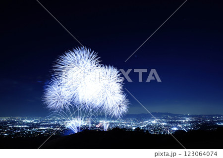 若草山山頂から望む奈良瑠璃絵2025花火フィナーレ