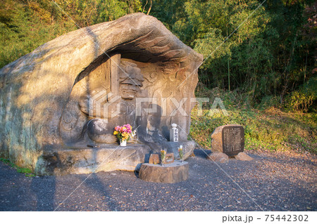 赤城町 棚下不動の滝 入口 不動明王像 秋景色