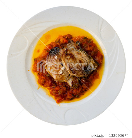 Duck breast on spicy mango sauce served with smoked sweet pepper