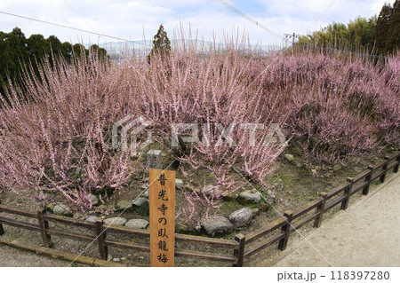 臥龍梅と境内 樹齢450年以上の臥龍梅(がりゅうばい)観光名所 普光寺(ふこうじ)福岡県大牟田市