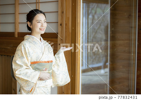 着物の女性 日本家屋