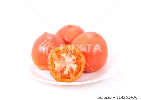 中くらいのサイズのトマト 丸ごと1個 明るい背景