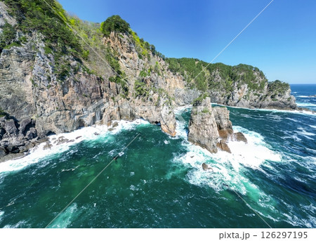 空撮「岩手県」ドローンで岩手県北山崎の断崖絶壁を撮影 田野畑村