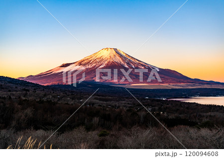 山梨 山中湖パノラマ台から見る富士山の夜明け