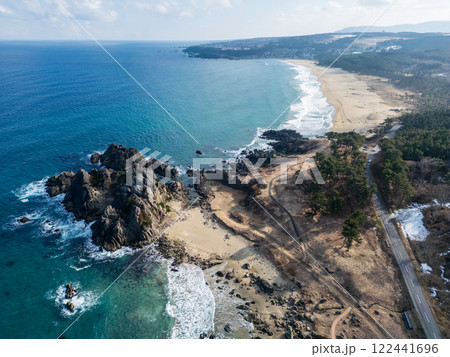 空撮「青森県」ドローンで種差海岸を撮影 冬