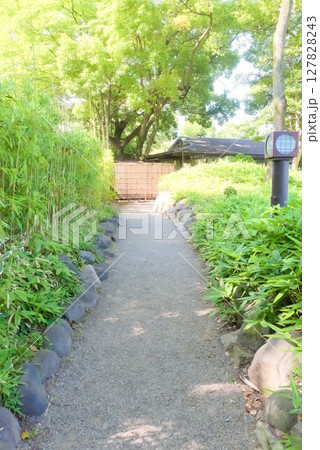清澄庭園の静かな竹林小道と和風の灯り