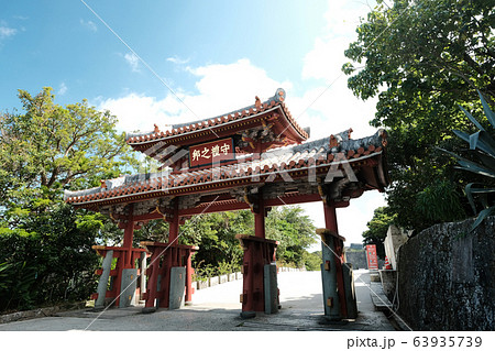 沖縄の観光地首里城公園の入り口守礼の門の正面