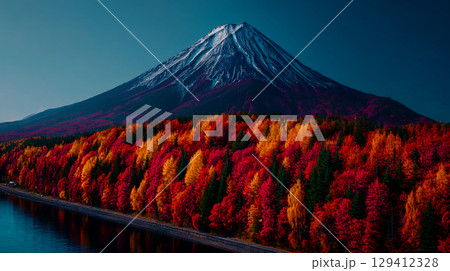 美しい紅葉と富士山の風景