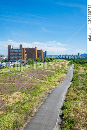 菅原城北大橋から望む淀川右岸上流側の風景 大阪市