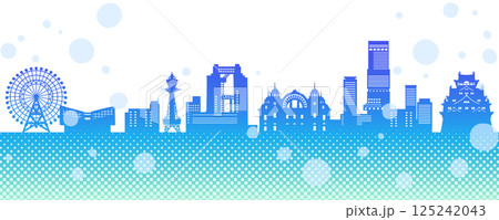 ポップでかわいい日本の街並みのシルエット、大阪