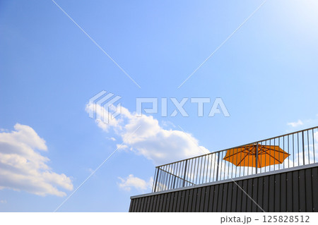 青い空と屋上のパラソル