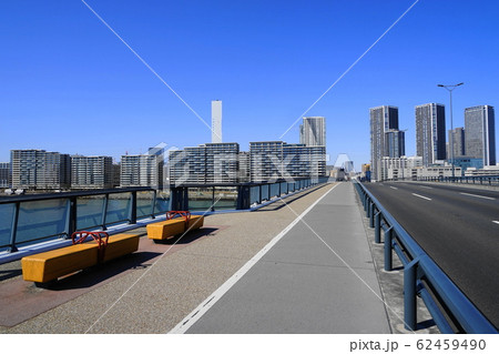 日本の東京都市景観 豊洲大橋から晴海フラッグなどを望む