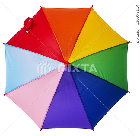 レインボーカラーのカラフルな傘(白背景)