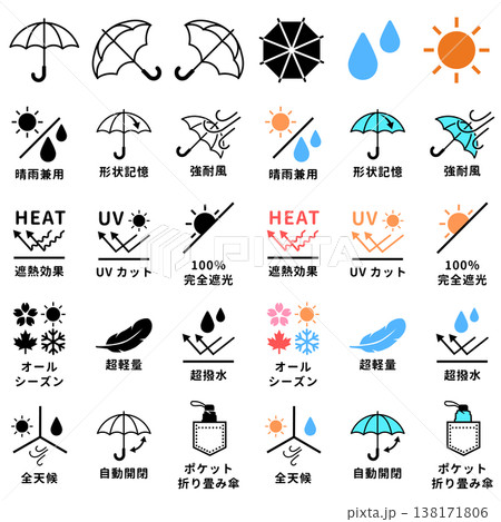 傘の機能表示・商品説明用アイコンセット日本語