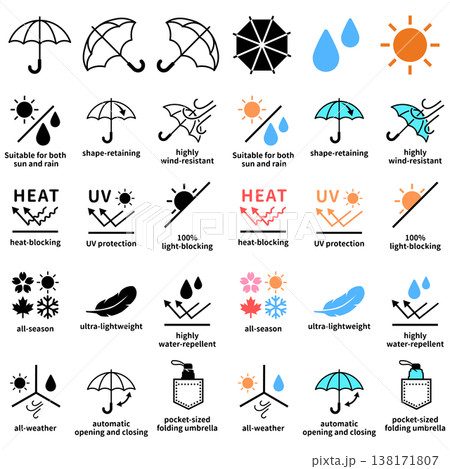 傘の機能表示・商品説明用アイコンセット英語