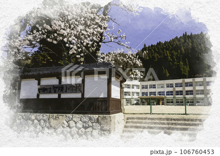 水彩画風 智頭町立智頭小学校 鳥取県八頭郡智頭町