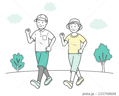 初夏から真夏にかけて気持ちよさそうに運動するカップル イラスト素材のセット