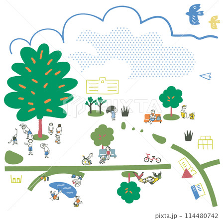 初夏から真夏にかけて気持ちよさそうに木陰でくつろぐ学生 イラスト素材のセット