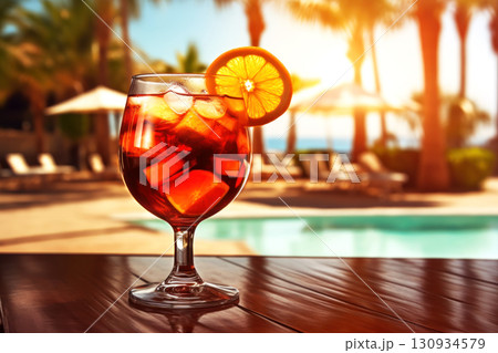A cozy glass of freshly brewed tea resting on a wooden table in the warm afternoon sunlight