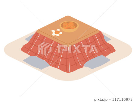 冬にこたつで丸くなる2匹の猫(ねこ・ネコ)のかわいい動物ベクターイラスト