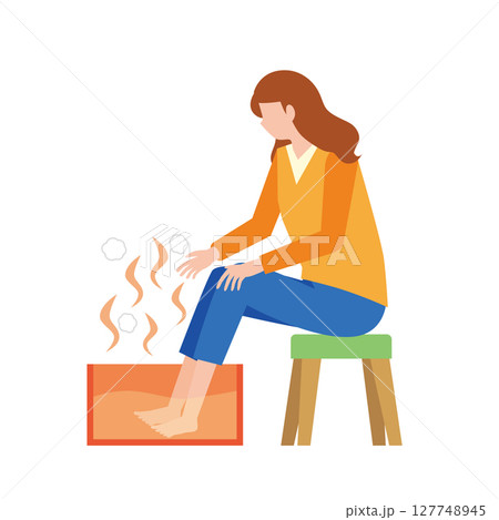 足湯で足を温める女性