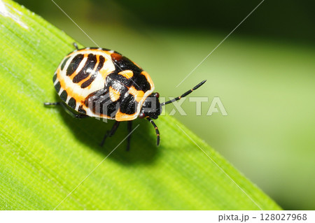生き物 昆虫 アオモンツノカメムシ、終齢(五齢)幼虫。大きさは成虫とほぼ同じ七ミリほど