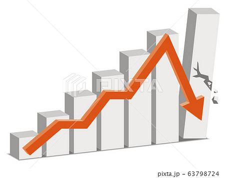 下落するグラフ 株価暴落 売上ダウン 棒グラフ ベクターイラスト