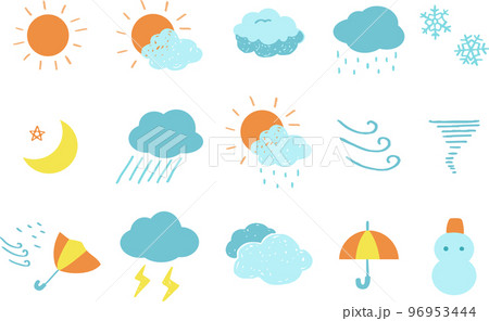 天気、天候のシンプルな手描きアイコンセットイラスト