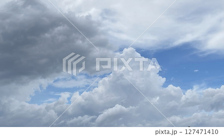 Pretty blue sky with bubble style white clouds floating atmosphere gentle skyscape
