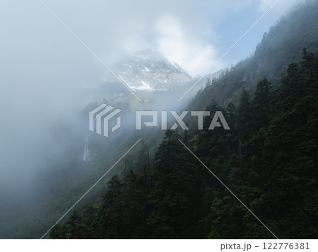Beautiful sunrise landscape over high altitude mountains in Sichuan,China