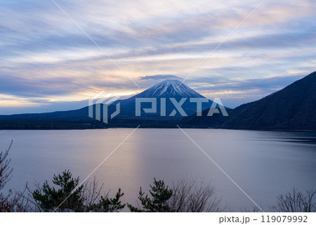 【富士山素材】本栖湖から見る日の出と朝焼けの風景【山梨県】
