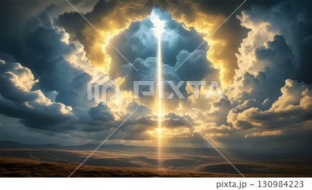 Big Sun Sunburst Sunlight with Clouds View in Beautiful Majestic Sky at Sunset Sunrise