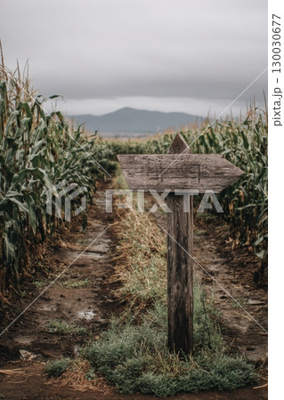 Close-Up of Handmade Protest Sign in Cornfield Under Overcast Sky