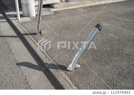 壊されたボラード(車止め)