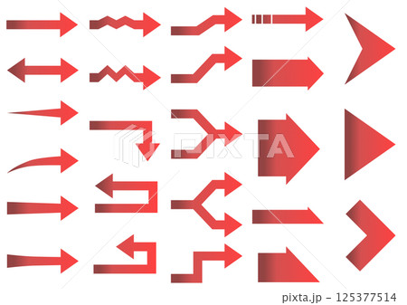 赤いグラデーションのシンプルな右方向の角丸な矢印セット