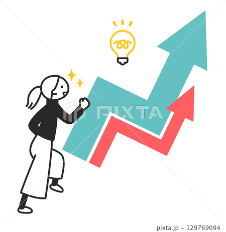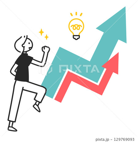 紆余曲折をへて、全体的に上昇する折れ線グラフ。成功と好調。上昇や増加を表す抽象的なコンセプト。