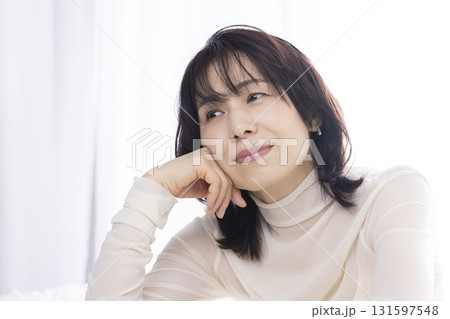 女性 更年期 女の人 ミドル世代 シニア 中年 主婦 美人 手 上半身 ポートレート ほてり 発汗