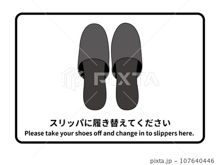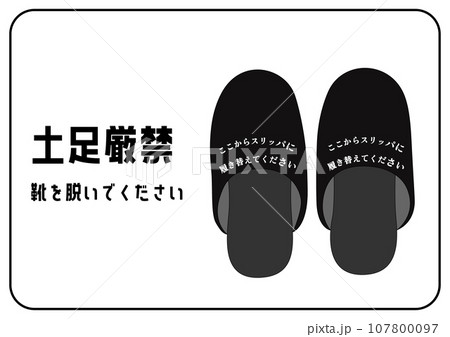 土足禁止 スリッパの履き替えをお願いする土足禁止の注意書き 張り紙 案内のモノクロイラスト