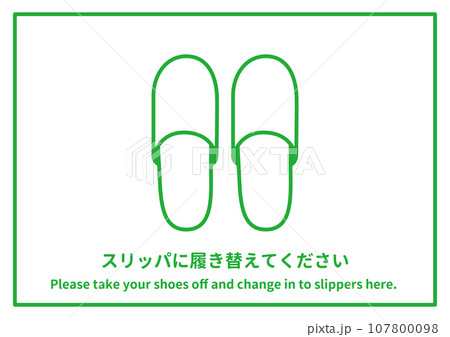 土足禁止 スリッパの履き替えをお願いする土足禁止の注意書き 張り紙 案内のイラスト グリーン