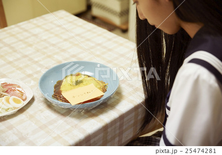 「おつかれさま」と書き置きを添えて夕食を残してある様子