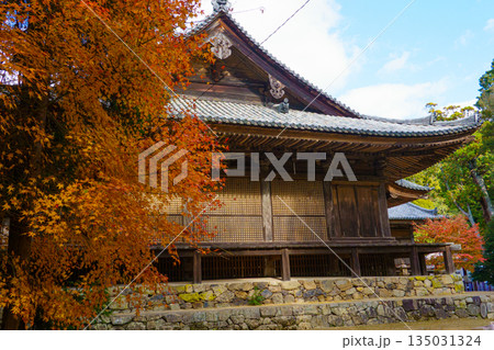 秋の兵庫県姫路市の書写山円教寺の摩尼殿