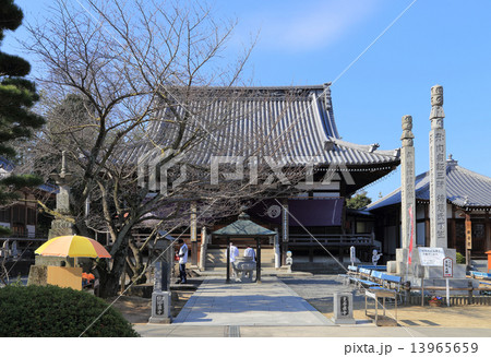 春の四国霊場第72番札所「曼荼羅寺」本堂前の桜とお遍路さん