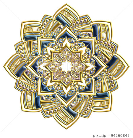 マンダラアート(金属レリーフ風、豪華、幾何学模様)
