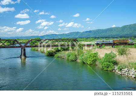 最上川鉄橋の画像素材(写真・イラスト)は170件あります。この検索結果では、桜、春、電車、ローカル線、風景、鉄道、花筏、稲穂、水田、鉄橋、花畑、水仙、列車、看板、標識などの絞り込みキーワードがよく使われています。 全て表示