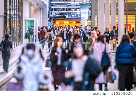 日本の東京都市景観 元日・賑わうアメ横。新年に希望の光を…インフル予防もマ不要=令和6年1月1日