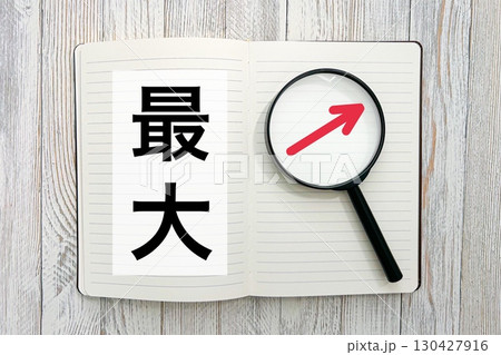 最大・上限のイメージ|「MAXIMUM」と書かれた積み木、ノート、ペン