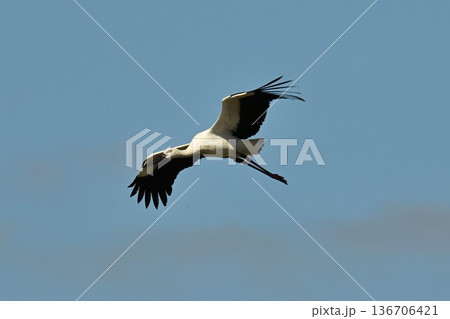 伊丹市昆陽池公園 青空を舞う コウノトリ