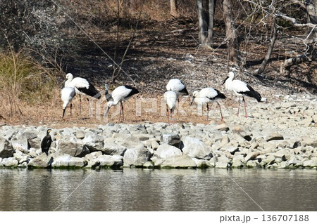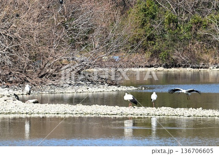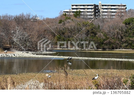 伊丹市昆陽池公園へ「幸せを運ぶ鳥」コウノトリ大量飛来