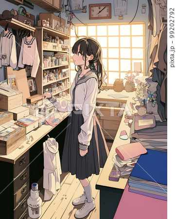 いろんな物に溢れた雑貨屋にいる女性店員「AI生成画像」